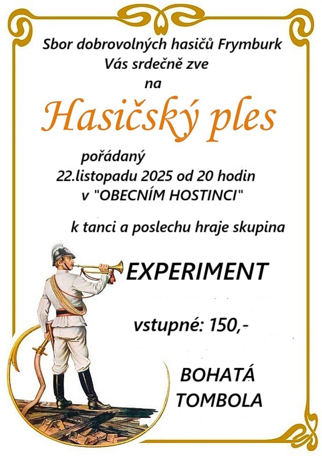 SDH Frymburk Vás všechny srdečně zve na hasičský ples!